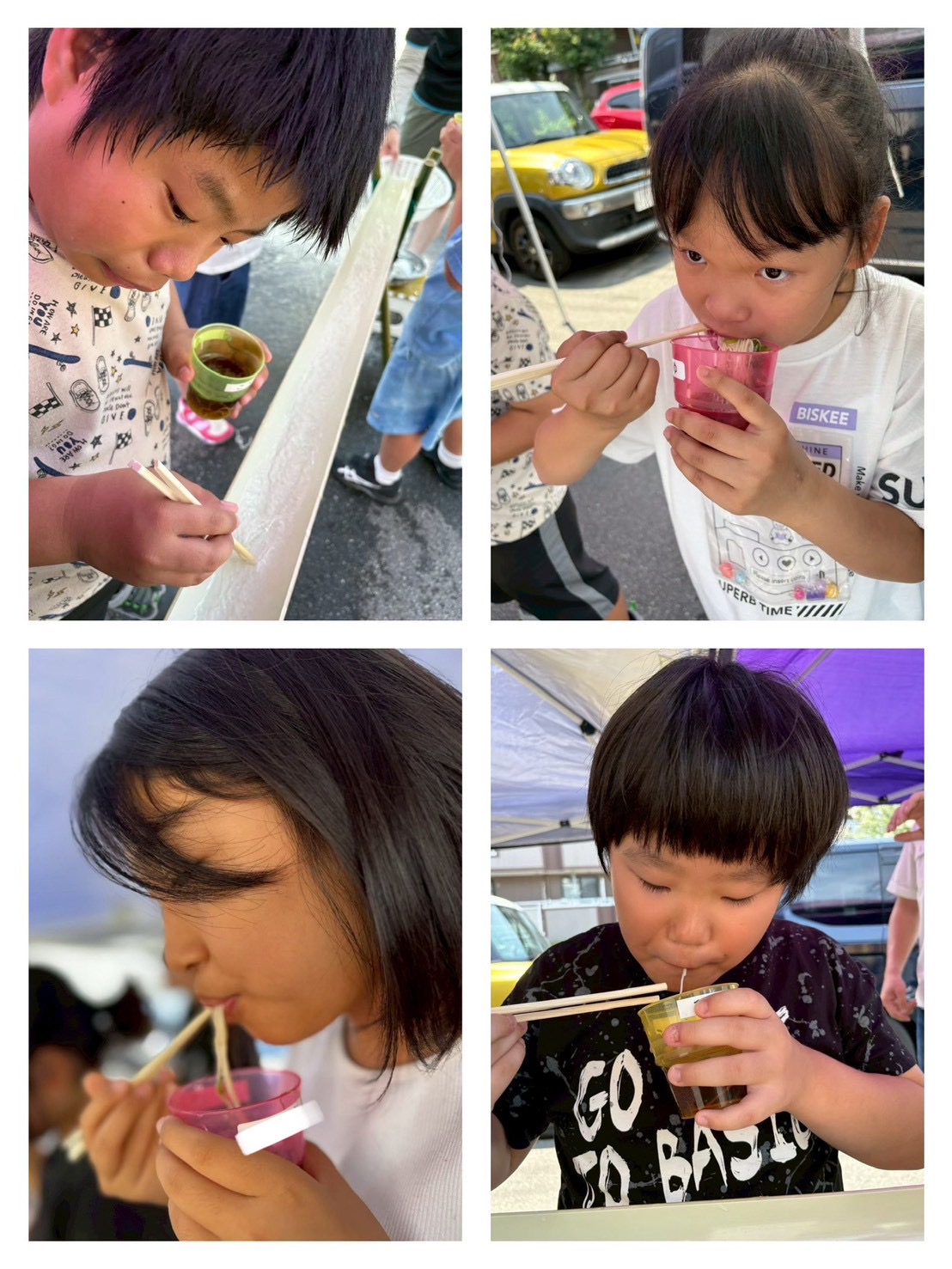 わいわいはうすの前で流しそうめんをしました♫そうめんをたっぷり食べた後、トマト・ブドウ・きゅうり・チーズと変わり種を流すと大興奮の子どもたち♡おなかがはち切れそうなくらいでした☺